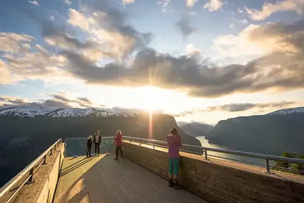 Even though Norway is in Scandinavia, it's a great year-round destination. In spring, fall, and summer you can easily drive any of the National Tourist routes along the fjords and enjoy the extra hours of sunlight hiking and exploring (the sun sets at 10:00 p.m. and rises around 4:00 a.m. in the summer). You can even ski year-round at most mountains, and come winter the fjord region gets the most snow in Northern Europe. Summer is the most popular time to visit, but both spring and fall boast mild temperatures (due to the Gulf Stream) that make it a pleasant time to visit as well.