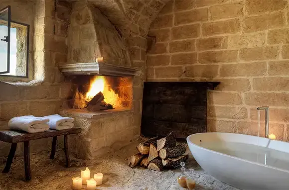 What We Love: When you step inside Sextantio Grotte della Civita, you can't help but sense the history of the cave dwellings and imagine yourself living here in prehistoric times. Cobblestone pathways lead between grottoes in a city that still looks ancient and has served as a backdrop for several biblical films, including Mel Gibson's The Passion of the Christ. Now a restored part of the town's UNESCO World Heritage site, the hotel's 18 boutique cave rooms are outfitted with modern minimalist furnishings, including gorgeous bathtubs near fireplaces and beneath carved stone walls and vaulted archways.