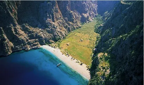 Reached only by taxi boat or by walking the (extremely sheer and rocky) Lycian Way Trail, Butterfly Valley is a hidden gem of a beach and one of Turkey's best-kept secrets. Its namesake comes from the rare species of more than 60 different types of butterfly that were, up until fairly recently, the valley's only inhabitants. The steep sided valley is filled with rich flora and fauna and lush vegetation that shelters the white-pebble coves; from here you can take a dip in the azure ocean and splash around in two small waterfalls.