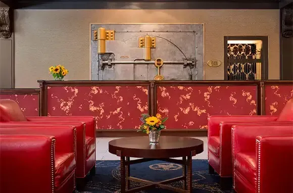 Originally built to house one of the state's most prominent banks of the day, Hotel Icon takes us ATM users back to a time when going to the bank was an experience that warranted dressing up. Guests are greeted by the massive, original pillars and an ornate recessed ceiling in the lobby. The old bank's wooden counter now serves as the front desk, and just behind it is the historic vault door, 17 feet tall and adorned with a big crank. As you check in, you'll also see an iron gate, once the doorway to the bank's safety deposit boxes. In the elevators, original stained-glass depictions of cotton fields, cattle farms, oil refineries, and other Texas industries remain intact. Need to secure a meeting venue? Gather in the basement wine vault, which was once the bank's main depository and still has its original brass doors.