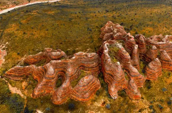 The landscape of Purnululu National Park is a picturesque wonder that is different from anywhere else in Australia. The park's Bungle Bungle Range is made up of 350-million-year-old orange-and-black-striped beehive-shaped sedimentary formations.