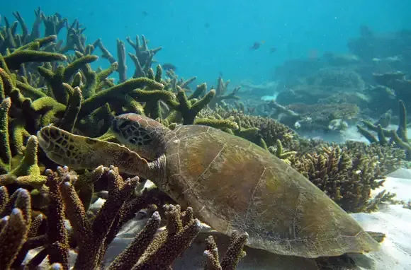 Ningaloo Reef is home to a wide variety of wildlife, including three turtle species, humpback whales, manta rays, 500 species of fish, and 250 species of coral. In certain areas of the reef, you can even do a "drift snorkel," letting the current carry you over the reef—no swimming required.