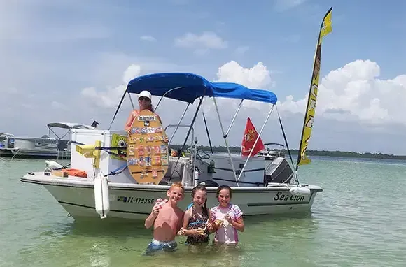 The Scoop: Local tour companies shuttle visitors to the pristine barrier island, popular for shell collecting, snorkeling, and dolphin spotting. But there aren't any concession stands here. So on scorching afternoons, when you're miles away from any store and you hear the tinkling ice cream boat's music, you get as giddy as you did when you were a kid. It's nirvana when Jim Purcell floats his boat right up to yours and pulls cold treats from his generator-chilled onboard freezers.