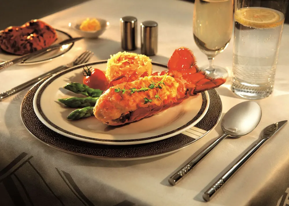 When you fly coach, you don’t even get real silverware, but in Singapore Airlines’ upper classes, gourmet meals are served on bone china that was specifically designed for the airline by Wedgwood (a world-famous fine china company). As for the food served on those expensive dishes, it’s been cooked fresh by the onboard chef.