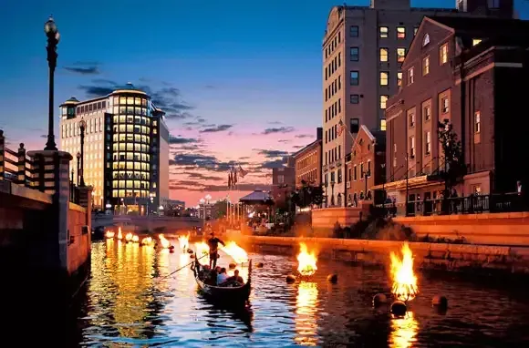 When fire meets water on warm nights in Providence, magic happens. Crowds begin gathering along the banks of Providence's three rivers before dusk to secure front-row seats to WaterFire, a spectacle of firetenders (torch bearers) slipping slowly downstream in boats, lighting each of more than 80 floating bonfires. Each performance has its own soundtrack that is selected by Barnaby Evans, the artist responsible for the event. WaterFire events usually occur on Saturday evenings between late May and early October.