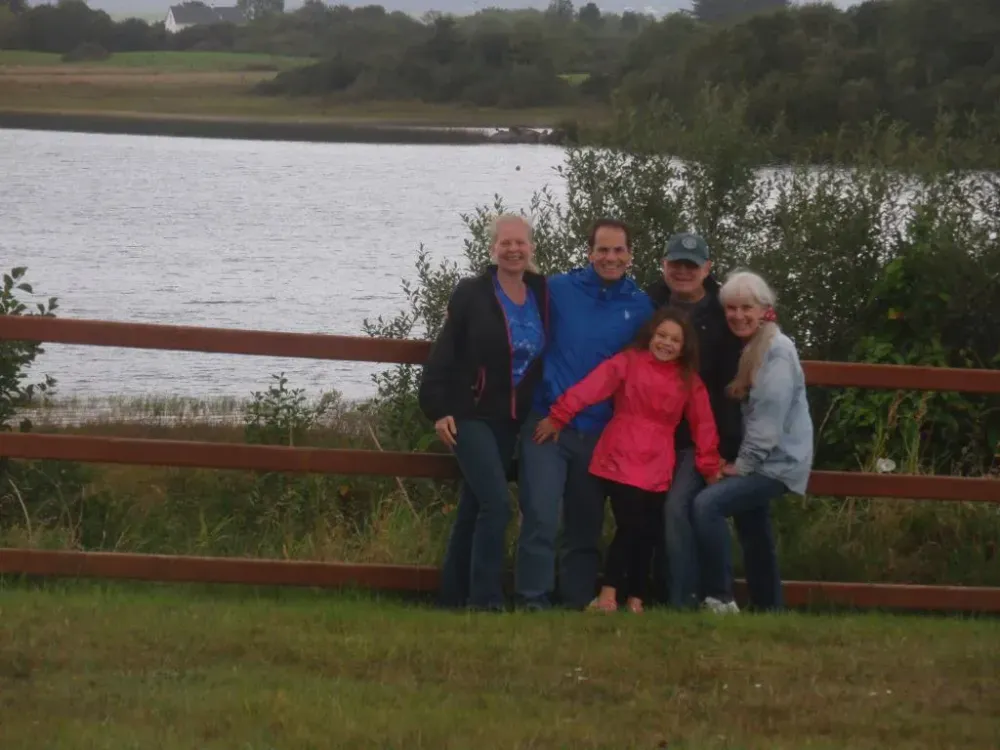 Monday September 21 – When we went in for breakfast, were asked again if we wanted an Irish breakfast, we all got scrambled eggs and bacon, John was able to get pancakes/waffles. Mary was very pleasant and hospitable as she did not have to prepare the pancakes. Due to the alterations in the plans yesterday we had to fill up with diesel again. We actually got up a little earlier today so we could have more time to go to the base area at Queen Maeve’s Tomb, (we did not go to the actual tomb, as we did not have time to climb up and do the rest of what we had planned for today.) We got to the parking lot and read all about Queen Maeve’s Tomb and took a picture. On our way to our next place we stopped to get pictures of the local animals that came close to the road. We crossed into County Mayo where our first stop was Lough Conn (Lough means Lake), where we stopped and took several pics, and once again it started to drizzle. Then we headed off to Westport, a very scenic drive. We stopped at a little café called Willow Café Tea Room, had Tea/Coffee and pastries. Strolled along the streets and bought some souvenirs and headed to Croagh Patrick, a pyramid shaped mountain. After this we left and the GPS gave us bit of trouble, it sent us down a really narrow road that only two bicycles would fit, just to cut off a corner of the regular roads and that would have only been 1km longer. Once we got back to a better road we headed to Connemara National Park. When we entered County Galway we saw sheep just roaming the road and shoulders, we had to stop and let them pass, and take some pictures (of course). Shortly after we made it to the park, once again it started to rain so John and I took the yellow trail which was just a few minutes long, we were smart enough to wear our ponchos this time (kept us nice and dry). Had some hot chocolate and a bite to eat then on our way to the next B&B (Heather Lodge). This B&B was even nicer than the first two. The one yesterday was much nicer than the first one, and this one was not only just as nice, but the rooms and the bathrooms were also much larger. Just like yesterday, Jane offered us coffee & tea and served that with slices of carrot cake, all of which were scrumptious. After getting settled we headed the short way into Clifden for dinner. We walked the couple blocks of this small town and decided to eat at Guy’s Bar (Pub) and we finally heard Irish Music. I had Fish and Chips, John had Beef and Guinness Stew both were wonderful and we tried a new Irish dessert called Sticky Toffee Pudding; which is a cake covered with Toffee Sauce and vanilla ice cream on the side. Also while we were there Zia found a friend to hang out with, named Alisha, whose mother was one of the musicians playing. Tonight it did not rain but it was cold so we had to wear our jackets. We are having such a wonderful time here in Ireland, can’t wait to see how the rest of the trip goes.