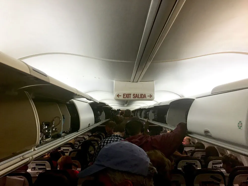 Second: FAA rules require airplanes to be built so that they can be completely evacuated in less than 90 seconds. This isn't an arbitrary number. That's the amount of time it can take a fire to engulf a plane cabin, thanks to the fuel and flammables on-board. Think about how long it takes to board or disembark a full flight under normal circumstances, with everyone dealing with their personal item and carry-on suitcase. Would you want to wait that long while your plane is potentially about to explode?