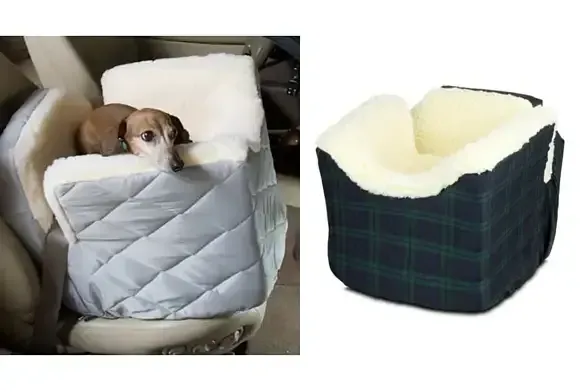 If your cat or small dog is prone to car-sickness, this booster seat is the best way to make them more comfortable. This padded seat will give your pet height as well as some stability in the car. It's a bit on the expensive side, but a quality seat like this is guaranteed to make any nervous pet feel secure and relaxed.