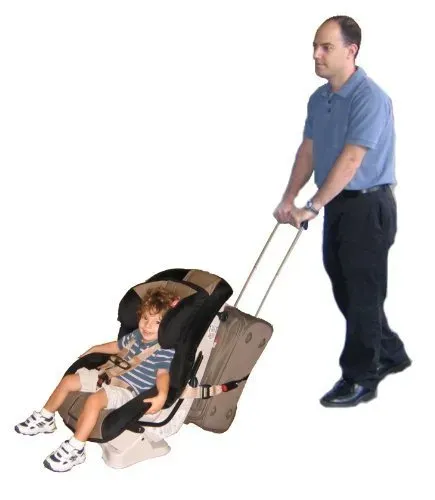 What Is It A small device that attaches a car seat to your rolling suitcase to create a stroller.