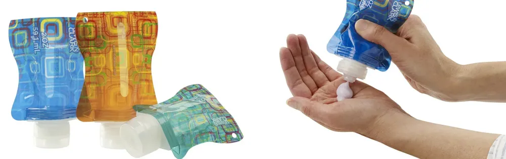 comes in—these containers start out flat and expand to fit whatever liquid or cream you put inside.