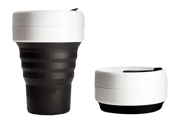 , a super portable reusable cup that folds down to two inches when empty. It's even leak-proof, so you can toss it in your bag without worrying about spills!