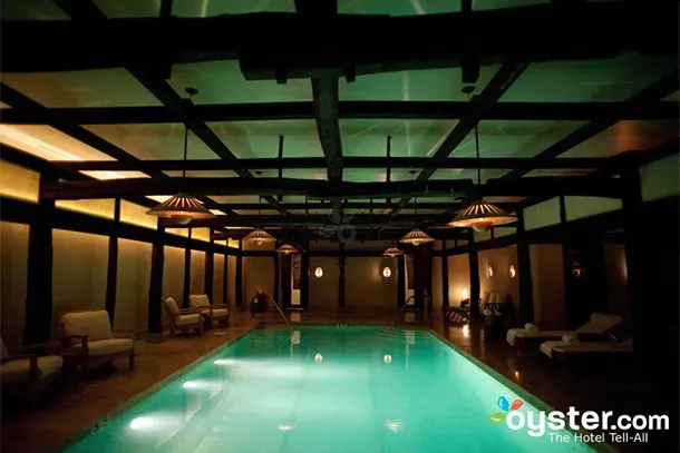 The Greenwich Hotel's hidden gem is its indoor pool, which sits under a 250-year-old, wood-and-bamboo Japanese farmhouse roof. The pool is lantern-lit and big enough for swimming laps, and both the pool and its accompanying spa were designed by Japanese designer Mikio Shinagawa. The aesthetic echoes the rustic-chic interior of the hotel, but with a Japanese theme.