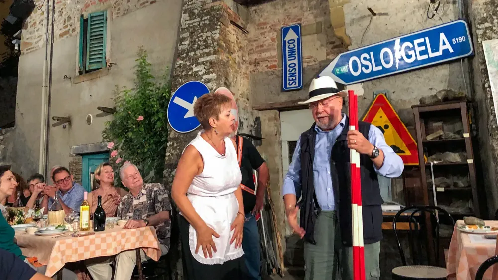 In scope, Tovaglia a Quadri always draws on a mix of local, national, and global issues, and is performed in a seamless blend of Italian, the local dialect, and—helpfully for people who don’t understand much Italian—a lot of easy-to-interpret physical theater.