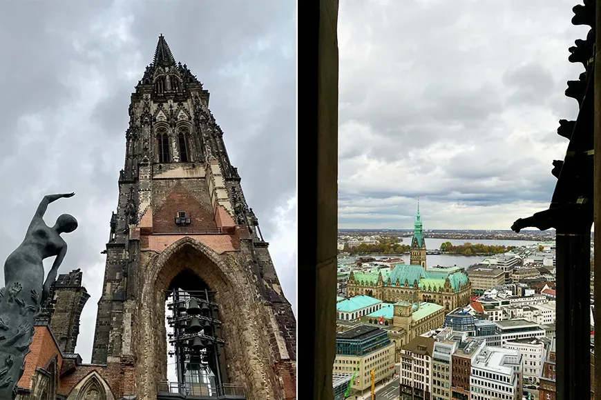 Perhaps the most unique of these three famous churches is the St. Nikolai Gothic-style cathedral, which was bombed to a shell in the second world war and never rebuilt. St. Nikolai’s bell tower remains, however, and is accessible for a small fee. The remnants of the rest of the cathedral also still stand as an open-air art exhibit and monument to the cost of war—especially in Hamburg, which was heavily bombed in the final days of World War II.