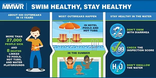 Even if the hotels are following CDC recommendations for cleaning pools and hot tubs with disinfectants, Cryptosporidium can still survive in the water for over a week, and it infects swimmers who accidentally swallow the contaminated water.