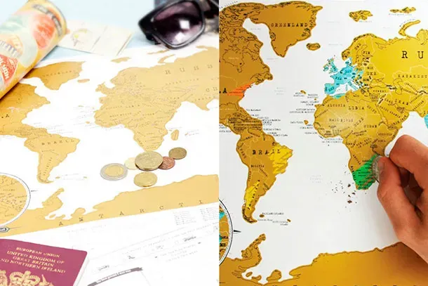, where you can track your world domination by scraping away at the gold foil layer. This travel edition comes in a sturdy tube for on-the-go scratching and features a blank map on the reverse to plot your route.