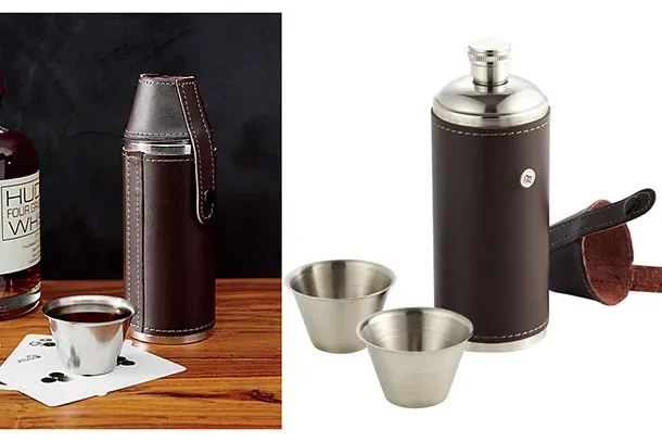 (complete with two shot glasses) looks far more expensive than the price tag would suggest. Fill it with holiday hooch for some festive cheer.
