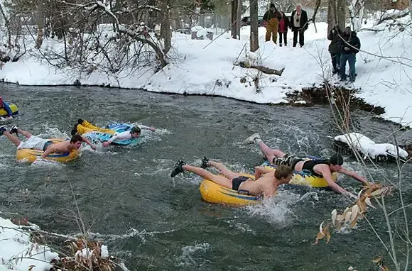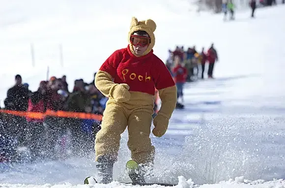 When winter starts to drip, Michiganians near the tip of the mitten get silly. Slush Cup, a Schuss Mountain tradition for 30-odd years, peaks with the weekend's main event: racing skis and snowboards across a 40-foot pond while sporting a ridiculous costume. And it's all downhill from there. Competitors rip down the slopes in the snow-shovel race or wrap up in a garbage bag and ride belly-down in the seal sled race. The heated outdoor pool's Fruity-Suity event sees contestants square off in a timed swimsuit-stuffing contest. Whoever exits the pool with the most fruit still tucked in wins.